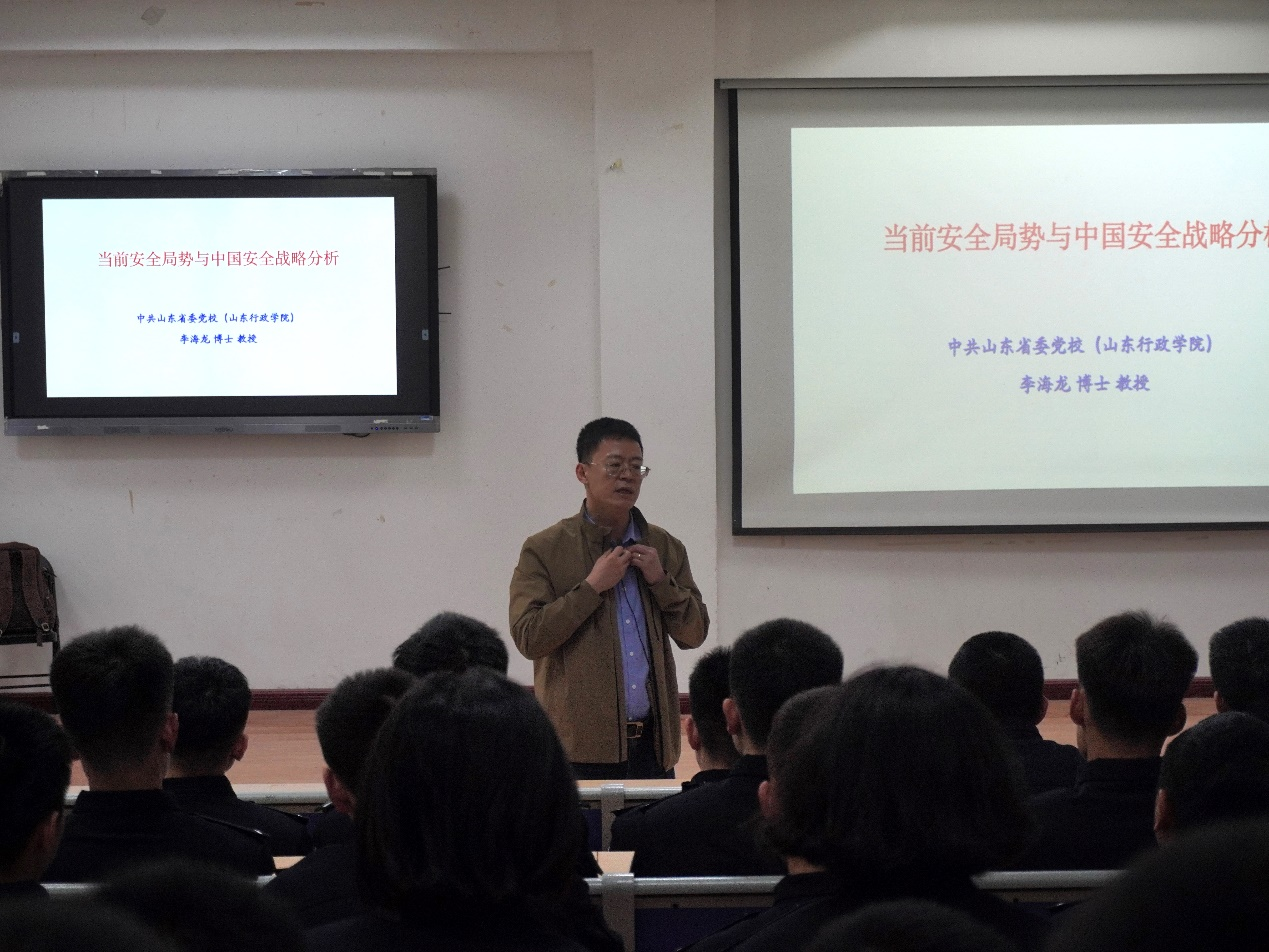 2026年4月15日是第十一个全民国家安全教育日。为深入贯彻落实总体国家安全观,切实提升思政课育人实效,4月16日上午,马克思主义学院举办国家安全“大思政课”教育活动,特别邀请山东省委党校(山东行政学院)李海龙教授为学生开展专题讲座。马克思主义学院部分教师及2024级侦查学、刑事科学技术、交通管理工程专业学生参加。