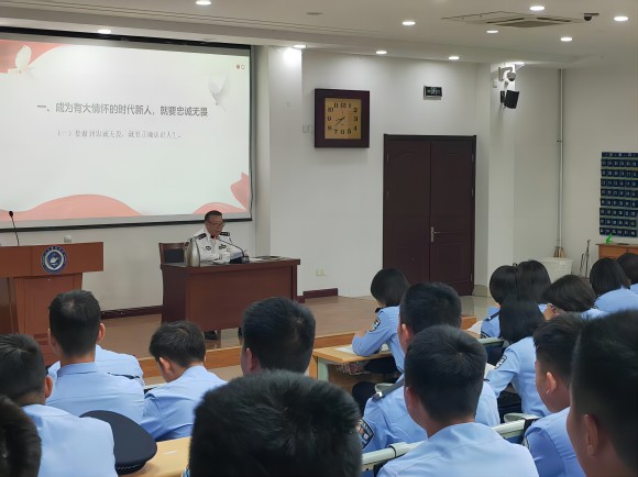 4月28日,学校党委委员、副院长刘克振以《忠诚严谨 团结奉献 做新时代有大情怀的生长型预备警官》为题,在教学楼E101教室为2024级侦查一二中队、治安五六中队学生讲授了一场生动的思政课。